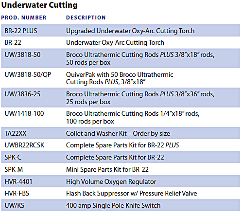 Que cắt dưới nước Ultrathermic Plus của Broco có đường kính 3/8 inch và các chiều dài 18 inch và 36 inch.